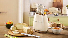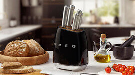 Perfectly suited to colourful kitchens, this knife block can be paired with other Smeg small appliances for a cohesive look or mixed and matched to your own creative taste. It's a versatile companion for cooks who love to personalise their space, down to the very last detail.