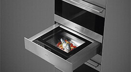 The handle-free drawer opens with a light push, creating a smooth, intuitive user experience. Inside, five preset temperature settings allow for variable temperature control, ideal for a wide range of uses including proving dough, gently reheating meals, or keeping crockery perfectly warm before serving. Its versatility makes it a valuable asset for any cooking style—from everyday meals to entertaining guests.