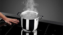 Induction generates heat only when cookware touches the zone, keeping surfaces cooler and safer around children. Spills won’t burn onto the glass, making the cooktop simple to wipe clean while combining safety with effortless maintenance.