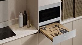 Designed to complement Smeg wine coolers, ovens, and built-in coffee machines, the drawer integrates harmoniously into any modern kitchen. It provides a complete and immersive wine experience, combining elegance, functionality, and cohesion in one refined solution.