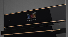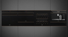 Crafted in black eclipse glass with refined copper detailing, Smeg's Dolce Stil Novo balances architectural clarity with expressive elegance. Its minimalist lines and soft-close mechanisms create a seamless, modern presence that integrates effortlessly into sophisticated kitchen spaces, reflecting a passion for design as precise as the culinary artistry it supports.