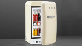This Smeg retro bar fridge with a left-hinge door is a stylish and practical addition for studios, offices, and rumpus room.