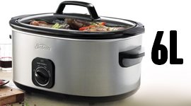 This slow cooker has a respectable 6 litre capacity, making it a good size for preparing family-sized meals. It’s also good for smaller households, as you can prepare a big dish on the weekend and live off the leftovers all through the week.