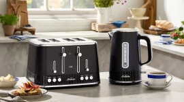 The 4-slice toaster is built for flexible breakfast preparation, with self-centring slots to help deliver consistent results across different bread types. Seven browning settings allow users to tailor toast to their preferred finish, while crumpet and defrost settings provide added versatility. QuickCheck lets users lift the lever to monitor browning progress without cancelling the cycle, and the high lift lever helps remove smaller items such as crumpets, muffins, and bagels more easily.