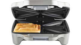 Create big toasties filled up with your favourite ingredients with the extra deep and larger dishes. Enjoy up to four large toasties at once.