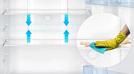 Easy-to-clean adjustable shelves