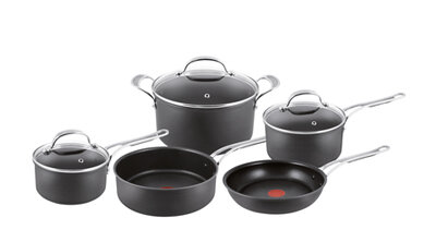 Equip your kitchen for even more cooking options. Attempt a new cooking technique you saw on a TV show or learn how to perfect a classic recipe with this Jamie Oliver cookware set from Tefal.