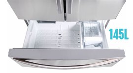 The multiple spaces within the fridge are designed for practical usage, with its handy easy-access slimline drawer great for smaller everyday items. You’ll also find adjustable door baskets along each door to store egg and dairy. Sat beneath the fridge are two variably-sized freezer drawers totaling 145L of capacity, with the convenience of a twist ice-cube maker for cool beverages at your fingertips.