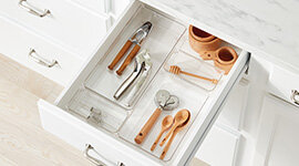 The Container Store Kitchen Drawer Packs are designed to transform cluttered drawers into streamlined, highly functional storage spaces. Thoughtfully curated with a combination of shallow, deep, and expandable organisers, each pack helps create clearly defined zones for utensils, cutlery, tools, and everyday kitchen essentials.