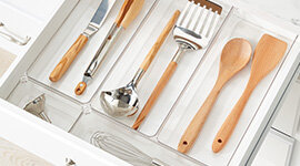 Includes a variety of organiser sizes that can be arranged to suit different drawer layouts, allowing you to create a tailored storage system for utensils and kitchen essentials.