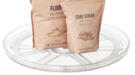 A large turntable enables smooth rotation, making it easier to reach items stored at the back of shelves or inside cabinets.