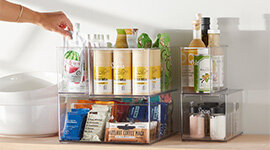 The Container Store Pantry Packs are designed to bring order, visibility, and structure to busy pantry spaces. Featuring a curated selection of stackable canisters, bins, organisers, and tiered solutions, each pack helps maximise shelf space while keeping dry goods and packaged items neatly arranged.