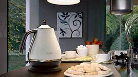 The DeLonghi Icona Capitals 1.7L Kettle blends distinctive Italian design with powerful everyday performance, available in a range of vibrant city-inspired finishes including Helsinki White, Auckland Black, Vienna Green, Amsterdam Blue and Edinburgh Black. Crafted with a robust stainless steel body and finished in a vivid matte coating, it adds cosmopolitan style to any kitchen while delivering reliable functionality.
