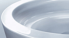 The rimless bowl eliminates hard-to-reach edges where dirt and bacteria can collect. This sleek, open design allows the flush to reach more of the bowl, making cleaning quicker, easier and more effective.