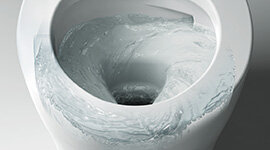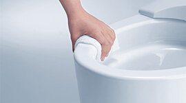 The bowl is coated with TOTO’s advanced Cefiontect glaze, creating an ultra-smooth surface that resists the build-up of waste and bacteria. This not only improves hygiene but also makes the toilet easier to clean, reducing the need for harsh scrubbing.