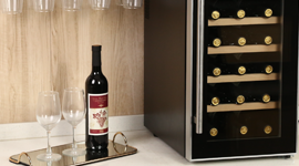 With its sleek and slim design, this wine cabinet can fit in most spaces but is still able to store up to 18 bottles, so you can enjoy a wide variety of wines. The sophisticated black frame with steel trimmings and tempered glass door, ensures your collection is immaculately presented. The thermoelectric cooling system maintains a consistent temperature and reduces vibration to optimally preserve your wine, ensuring every sip is as good as the last. This system also minimises noise, with a decibel rating range of 30dB to 39dB, meaning your wine cabinet will not interrupt your dinner conversations.