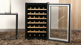 This wine cabinet has a capacity of up to 28 bottles, allowing you to store a wide range of wines from new discoveries to old favourites. The sophisticated black frame with steel trimmings, tempered glass door, and internal LED lighting ensures your collection is immaculately presented. The thermoelectric cooling system maintains a consistent temperature and reduces vibration to optimally preserve your wine, ensuring every sip is as good as the last.