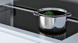 This V-ZUG CookTopInduction V6000 makes creating your culinary delights simple. There are five cooking zones, supported by nine power levels. Using the bridging function, you can combine two cooking zones into one larger zone to accommodate your larger pots and pans.
