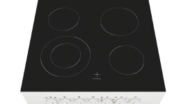 Up top, the black ceramic glass cooktop features four cooking zones, including a practical dual zone element that adapts to different pot and pan sizes. This added flexibility makes it easy to switch between small saucepans and larger cookware without compromising efficiency. Hot surface indicators provide added awareness during and after cooking.