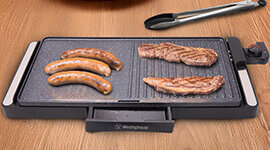 One of your small appliances might have stopped functioning on a busy Monday morning, or maybe you've set aside enough budget to upgrade a home essential to a more efficient model. If not, then maybe you're looking to cater to your family's growing needs by getting something bigger. No matter what the reason is, you'll want these home essentials immediately, and that's where Appliances Online excels. We remove the hassle from shopping, turning what may seem like a tedious, lengthy task into an enjoyable experience every time. We've done all the heavy work for you, so there's no need to keep endlessly researching replacements, comparing one product to another or worrying about the specs and features of options like Westinghouse Non-Stick Portable Electric Grill WHEG01K and beyond. We provide you with the freedom to make the right choice with a selection of over 8,000 different products from familiar and trusted brands. As Australia's largest online retailer of appliances and home essentials, our mission is to give you a fun, simple and efficient shopping experience that you can enjoy from your home or phone. We recognise that your time and money are precious, which is why we go the extra distance to add value to your purchase.