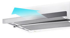 Switching between the different fan speeds of this rangehood is as easy as sliding it out. The further you slide the rangehood out, the more powerful the exhaust. It's that simple.
