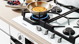 For added safety, this gas cooktop features a flame failure device. This feature stops the supply of gas to the burners if the flame is extinguished.