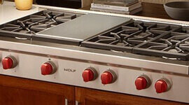 Wolf rangetops bring professional-grade power and style to your kitchen. With front-facing controls and a spacious cooking surface, they offer seamless access to burners and griddles, just like in a professional setup. Durable, high-performance, and built for ambitious cooks, a rangetop elevates your culinary space with precision and confidence.