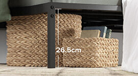 With 26.5 cm of clearance beneath the frame, this design offers practical space for storing boxes, bedding, or seasonal items out of sight.