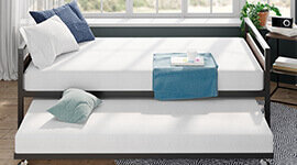 Offers a single-size daybed with a pull-out trundle, providing a second sleep surface that tucks away easily when not in use.