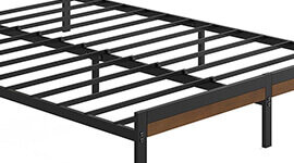 Engineered for everyday durability, the Kai frame features a solid steel base with closely spaced metal slats to support memory foam, latex, or spring mattresses—no box spring required. The sturdy construction ensures long-term support while helping to reduce mattress sagging and improve airflow beneath the bed.