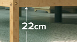 Standing at a practical height, the frame also offers 22 cm of underbed clearance—ideal for discreet storage of seasonal items, luggage, or extra bedding. Designed for ease of use, the Moiz bed base ships in one compact box and includes all tools and clear instructions for simple, straightforward assembly.