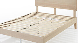 Designed for everyday durability, the Moiz frame includes a strong wooden slat foundation that supports memory foam, latex, or spring mattresses—no box spring needed. The slats are spaced to promote airflow and provide even support across the mattress, helping reduce sagging and extend mattress life.