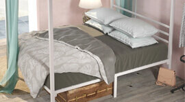 Crafted from sturdy steel, the frame provides strong, reliable support for your mattress—no box spring required. Closely spaced metal slats help extend mattress life by preventing sagging, while also supporting a variety of mattress types, including memory foam, spring, and hybrid. The open canopy design invites you to personalise your space with draped fabrics, lights, or left bare for a crisp, architectural look.