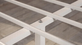 A flat slat system offers balanced support for all mattress types—no box spring required—helping maintain long-term comfort.