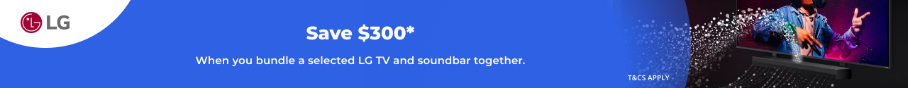 Bundle a selected LG TV and soundbar, between 24/10/2024 00:00am AEDT until 06/11/2024 23:59 AEDT (offer period), and Save $300!
