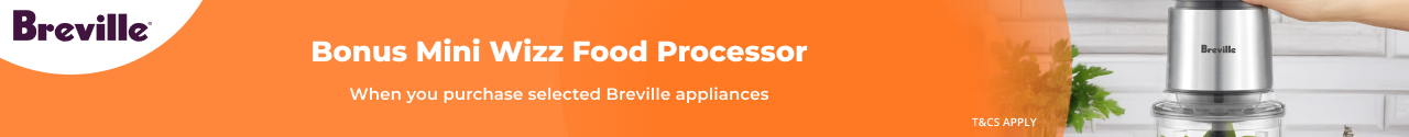 Purchase a selected Breville appliance between 1/11/2024 00:00 AEDT and 31/12/2024 23:59 AEDT and get a bonus Mini-Wizz Quad Blade Food Processor free via redemption.