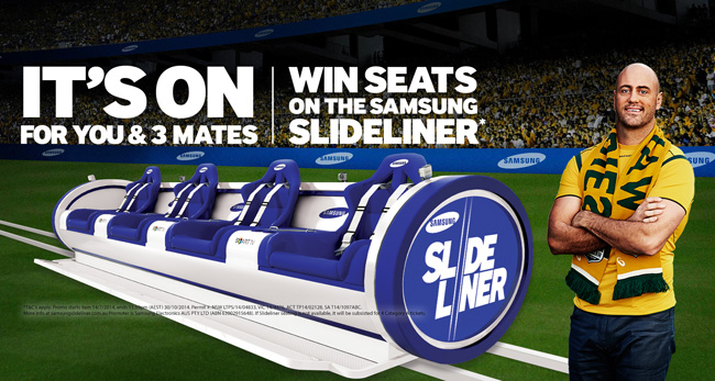 1.Promotion starts 12am 14/07/14 and ends 11:59pm (AEST) 30/09/14 2.Each draw conducted at 11am (AEST) at Suite 3, Erina Plaza, 210 Central Coast Highway, Erina, NSW 2250: (a) 1st Match Draw: 04/08/14; (b) 2nd Match Draw: 25/08/14; (c) 3rd Match Draw: 07/10/14. Winners notified within 2 business days and names published on www.samsungslideliner.com.au. 3.Each Draw's major prize is: (a) 4 return economy airfares to city of Match from winner's nearest major Australian city of ADEL, BNE, CAN, DRW, HOB, MEL, PER or SYD (excl. city of Match); (b) 1 night accommodation; (c) 4 seats in Samsung Slideliner; (d) return transfers from accommodation to Match; (e) "meet and greet" with selected Wallabies and stadium tour; (f) 4 Wallabies rain jackets; and (g) lunch for 4 with Nathan Sharpe (subject to availability). Each major prize valued up to $6,160.00. 4.Runner up prizes available. Total prize pool valued up to $140,275.00. 5. Full terms and conditions at http://www.samsung.com.au/promotions 6. "Promoter" is Samsung Electronics Australia Pty Ltd ABN 63 002 915 648 of 8 Parkview Drive, Homebush Bay, NSW 2127. Permits: Permits: NSW Permit No. LTPS/14/04833. VIC Permit No. 14/4476. ACT Permit No. TP14/02128. SA Permit No. T14/1097